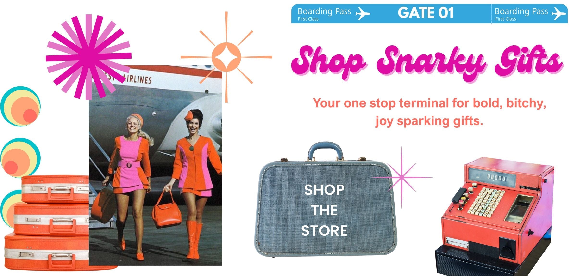 Your boarding pass is in hand - now choose where you want to land today. Whether you're here to drop your baggage, treat your bad self, or grab a quick hit of bold inspiration, there's a gate calling your name.