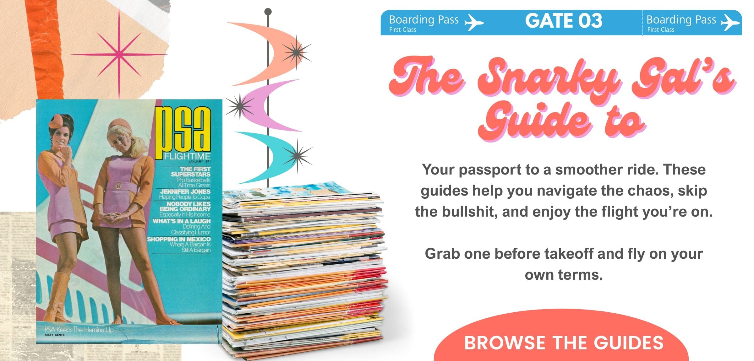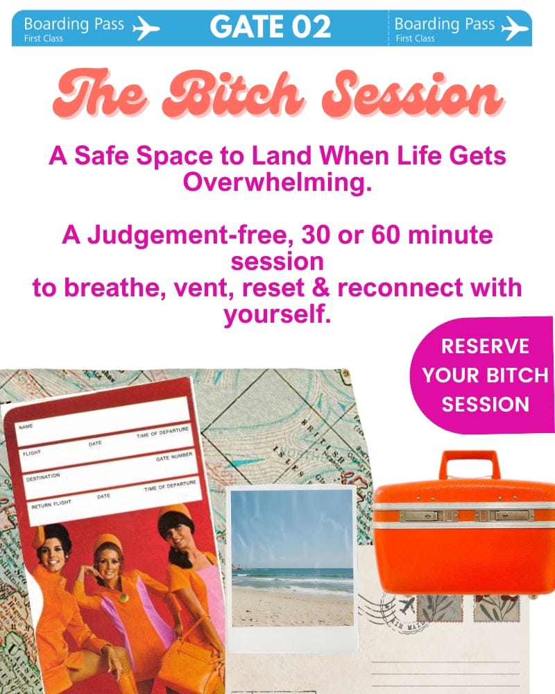 Our flight today is nonstop service to a bold, beautiful, badass life — no layovers in Drama City, no detours into BS. I’ll be your pilot, your co-pilot, and sometimes your in-flight cocktail waitress, here to help you ditch the baggage and chart a course you actually want to follow.